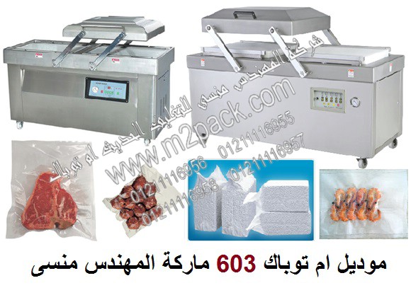 ماكينة فاكييوم لشفط و تفريغ الهواء من الاكياس صناعية حجرتين بمضختين موديل ام تو باك 603 ماركة المهندس منسي
